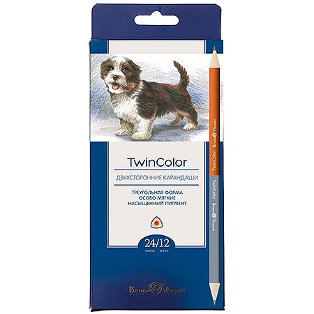 Карандаши " Bruno Visconti " Twincolor 24цв 12шт, двухсторонние, трехгранные, деревянные, картонная упаковка, европодвес