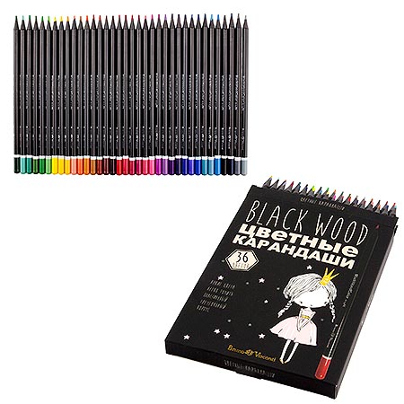 Карандаши " Bruno Visconti " BlackWoodColor 36цв 4 вида (без возможности выбора дизайна), трехгранные, пластиковые, картонная упаковка