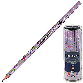 Карандаш ч/гр " Bruno Visconti " Happy Graphix Цветочки HB, трехгранный, заточенный, деревянный, пластиковый тубус