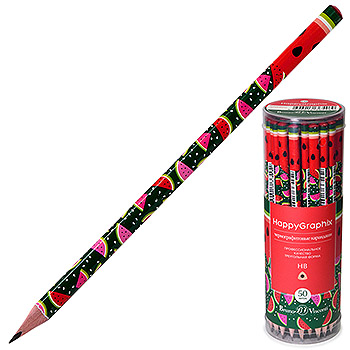 Карандаш ч/гр " Bruno Visconti " Happy Graphix Арбузы HB, трехгранный, деревянный, заточенный, пластиковый тубус