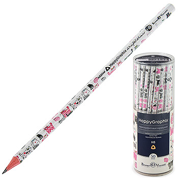 Карандаш ч/гр " Bruno Visconti " Happy Graphix Романтика крафт HB, трехгранный, деревянный, заточенный, пластиковый тубус