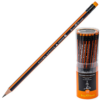 Карандаш ч/гр " Bruno Visconti " Graphix B с ластиком, трехгранный, деревянный, заточенный, пластиковый тубус