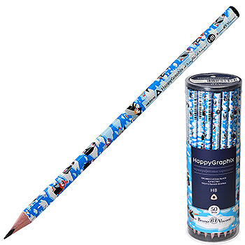 Карандаш ч/гр " Bruno Visconti " Happy Graphix Пингвины HB, трехгранный, деревянный, заточенный, пластиковый тубус