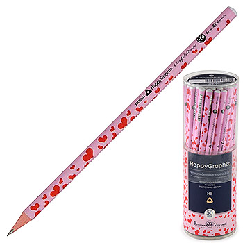 Карандаш ч/гр " Bruno Visconti " Happy Graphix Розовые сердца HB, трехгранный, деревянный, заточенный, пластиковый тубус