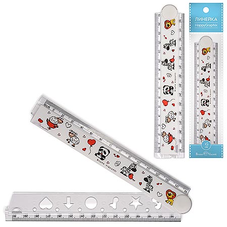 Линейка " Bruno Visconti " HappyGraphix. Веселые зверушки, 15/30см, пластиковая, складная
