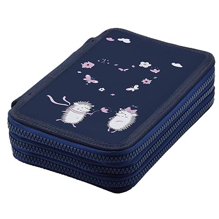 Пенал " Bruno Visconti " 3 отделения 20*13*7,5см Ежики. Романтика, полиэстер