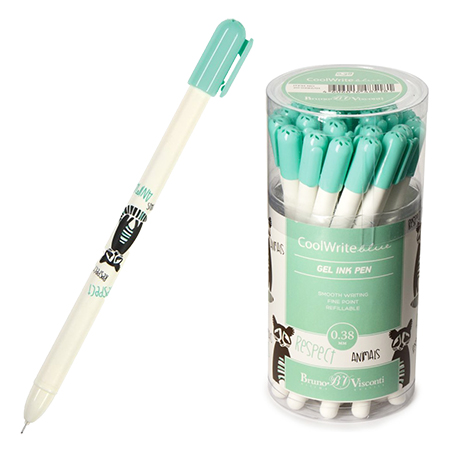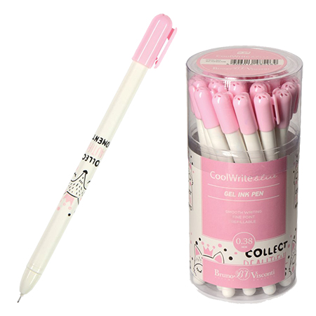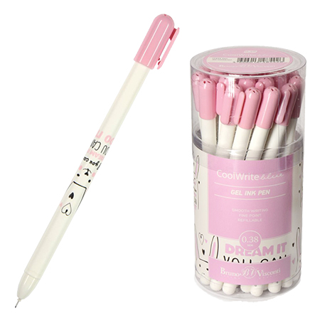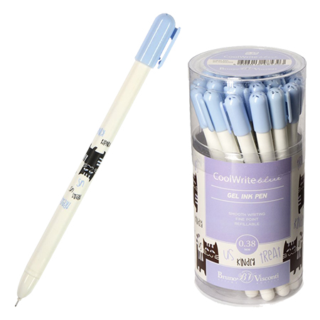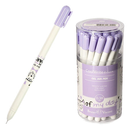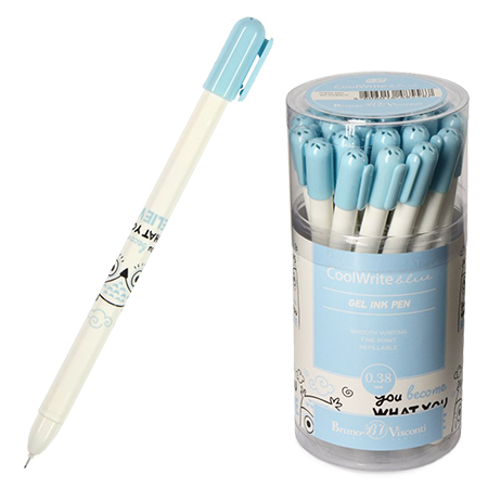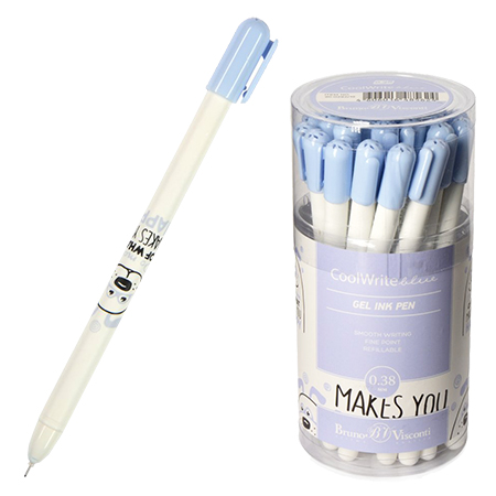 Ручка гелевая " Bruno Visconti " CoolWrite Котик синяя 0,38мм, игольчатый пишущий узел, непрозрачный пластиковый корпус, колпачок с клипом, пластиковый бокс