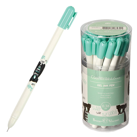 Ручка гелевая " Bruno Visconti " CoolWrite Коала синяя 0,38мм, игольчатый пишущий узел, непрозрачный пластиковый корпус, колпачок с клипом, пластиковый бокс