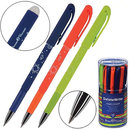 Ручка пиши-стирай " Bruno Visconti " гелевая DeleteWrite Art Космос синяя 0,5мм металлизированный наконечник, 3 цвета корпуса( синий, оранжевый, зеленый), пластиковый бокс