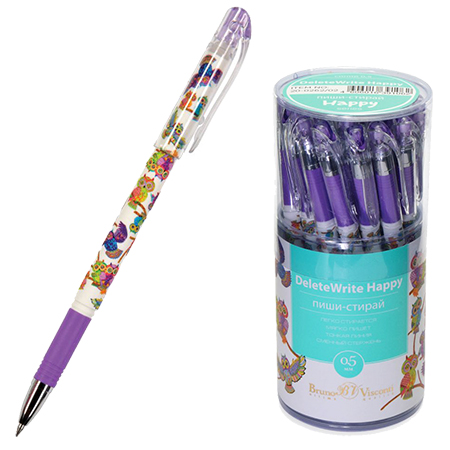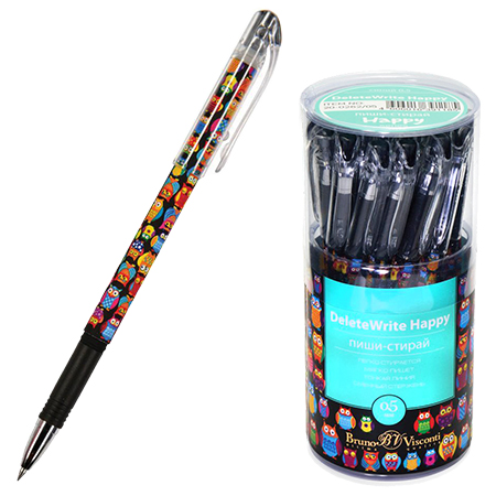 Ручка пиши-стирай " Bruno Visconti " гелевая DeleteWrite Happy Яркие совы, синяя 0,5мм, пластиковый бокс