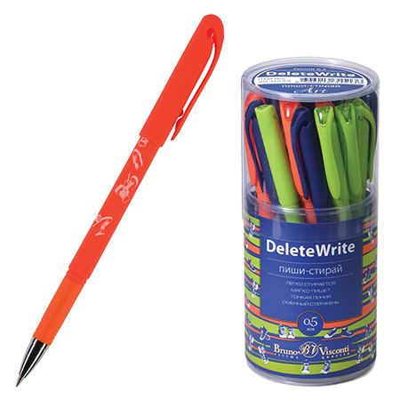 Ручка пиши-стирай " Bruno Visconti " гелевая DeleteWrite Art Кеды синяя 0,5мм металлизированный наконечник, колпачок с силиконовым ластиком, 3 цвета корпуса (зеленый, оранжевый, синий), пластиковый бокс