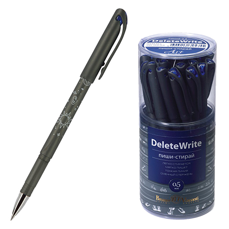 Ручка пиши-стирай " Bruno Visconti " гелевая DeleteWrite Art Boys синяя 0,5мм металлизированный наконечник, цвет корпуса- серый, пластиковый бокс