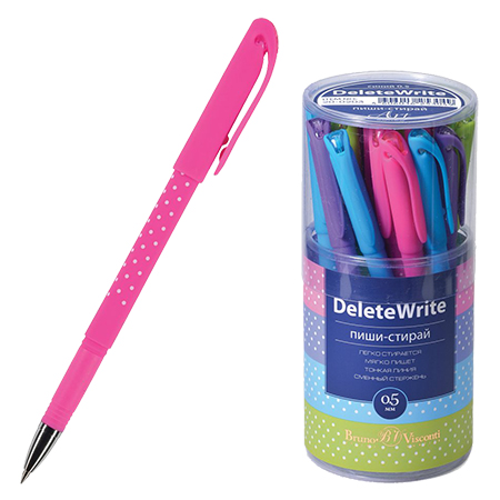 Ручка пиши-стирай " Bruno Visconti " гелевая DeleteWrite Art Горошек синяя 0,5мм металлизированный наконечник, колпачок с силиконовым ластиком, 4 цвета корпуса (фиолетовый, розовый, салатовый, голубой), пластиковый бокс