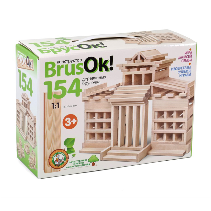 Конструктор деревянный BrusOк 154 эл, картонная коробка