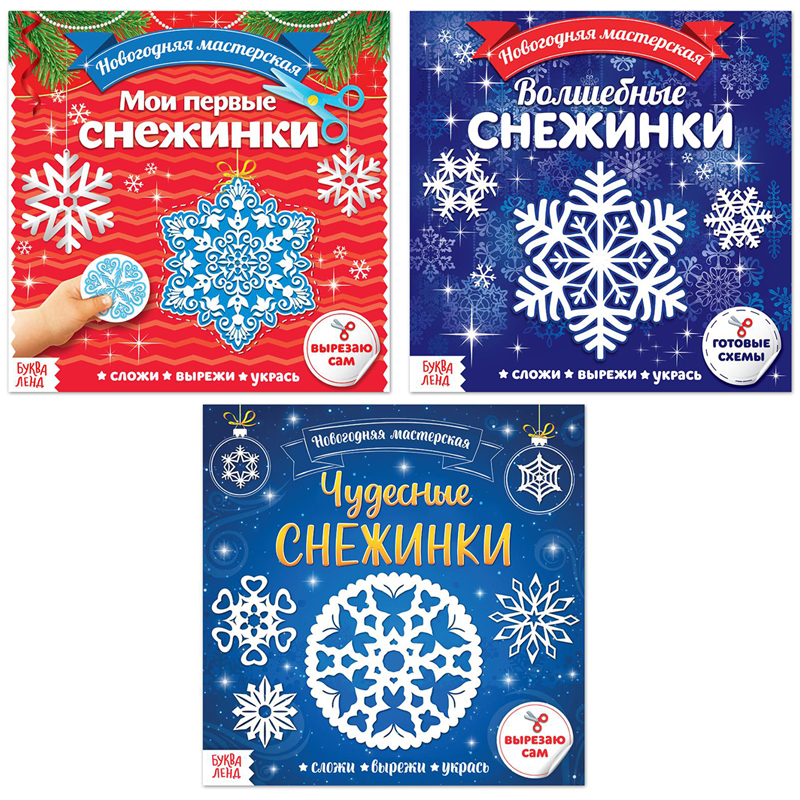 Набор аппликаций Буква-Ленд "Новогодняя мастерская снежинок", 19*19см, 20стр., 3шт.