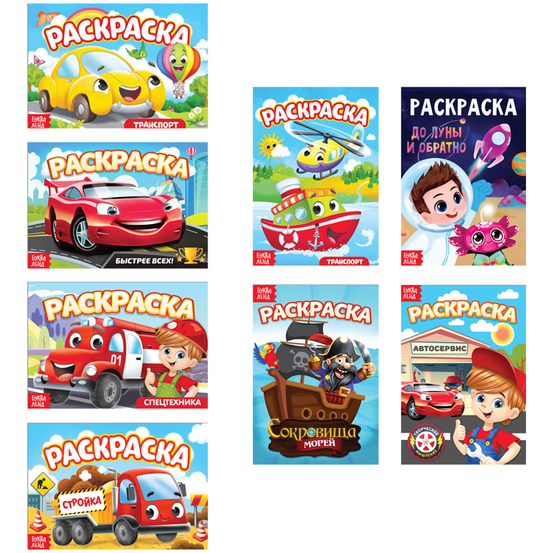 Набор раскрасок А5, Буква-Ленд "Для мальчиков. Мои любимые машинки", 12стр., 8шт.