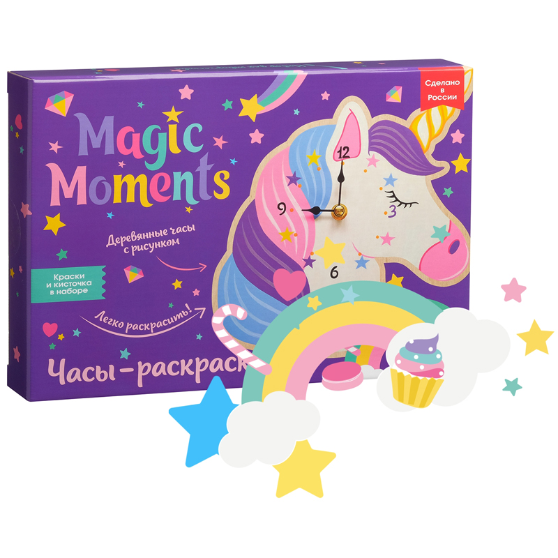 Набор для росписи изделий из дерева Бумбарам "Часы-раскраска. Единорог"