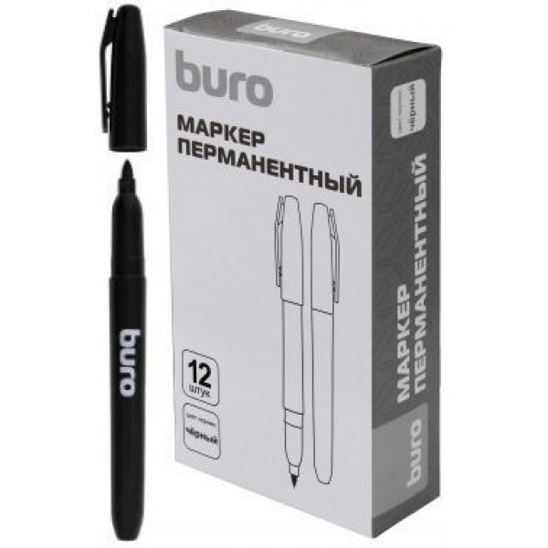 Маркер перманентный Buro Line пулевидный пиш. наконечник 1мм черный коробка