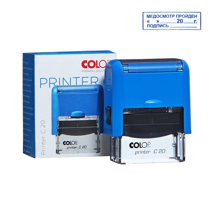 Штамп автоматический "Медосмотр пройден «_» 20__г. Подпись __", 14 х 38 мм, синий