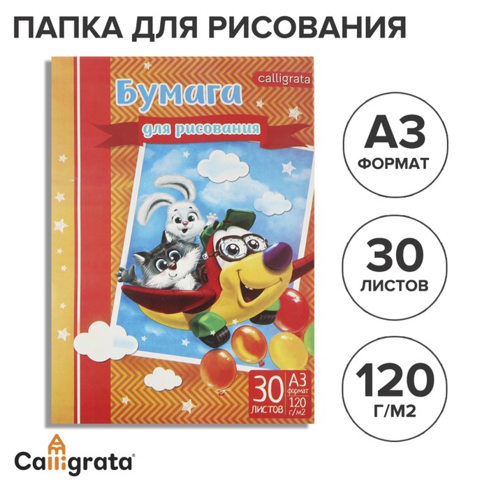 Папка для рисования А3, 30 листов "Детский сад", 120г/м2