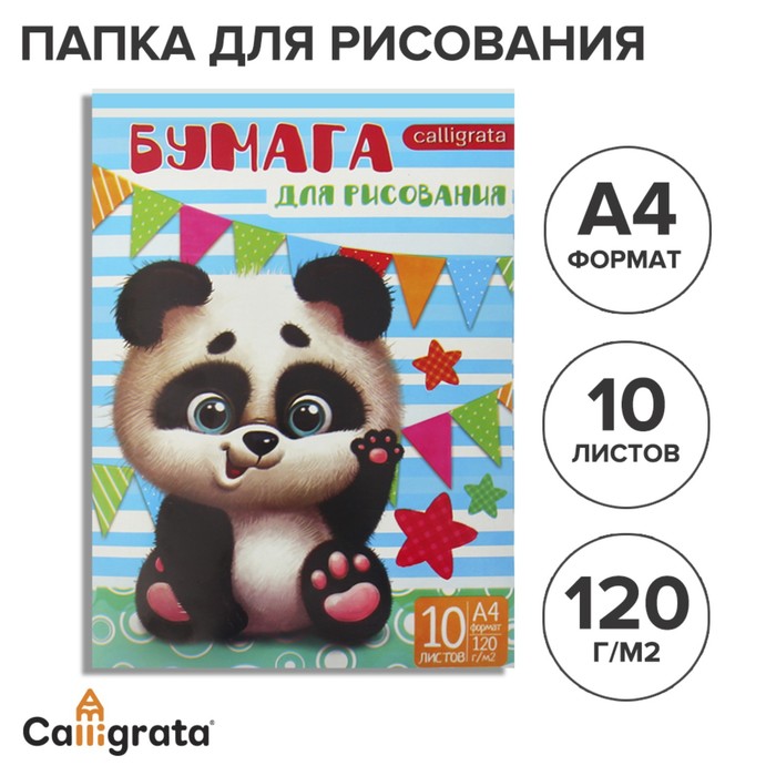 Папка для рисования А4 10 листов "Панда", блок 120г/м