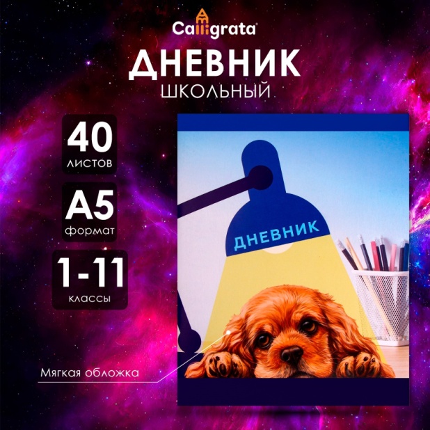 Дневник в мягкой обложке, для 1-11 классов, 40 листов, Calligrata "Собачка. Арт"