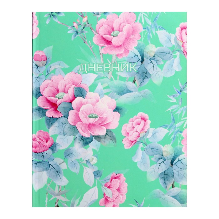 Дневник универсальный для 1-11 классов, "Цветы на мятном фоне", интегральная (гибкая) обложка, матовая ламинация, выборочный лак, 40 листов