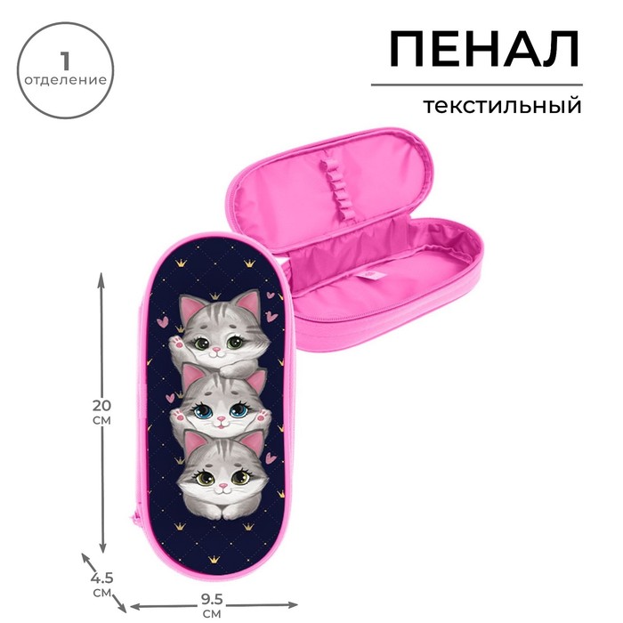 Пенал-футляр 95 х 205 х 45 мм, мягкий, текстильный, Calligrata, ПМК 27-20 резинка на клапане,"Котики"
