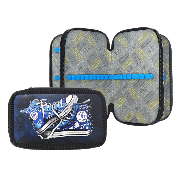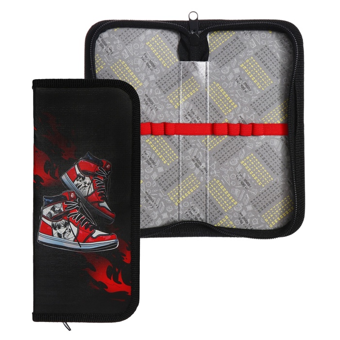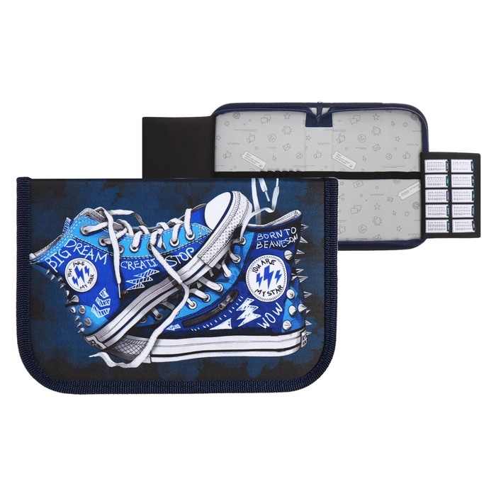 Пенал 1 секция 140 х 210 х 40 мм, откидной карман и косметичка, тканевый, Calligrata TOP Content "Кеды"