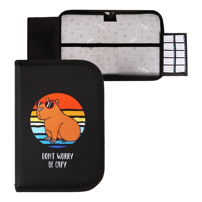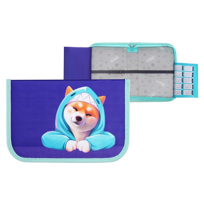 Пенал 1 секция 140 х 210 х 40 мм, откидной карман и косметичка, тканевый, Calligrata TOP Content "Хомячок"