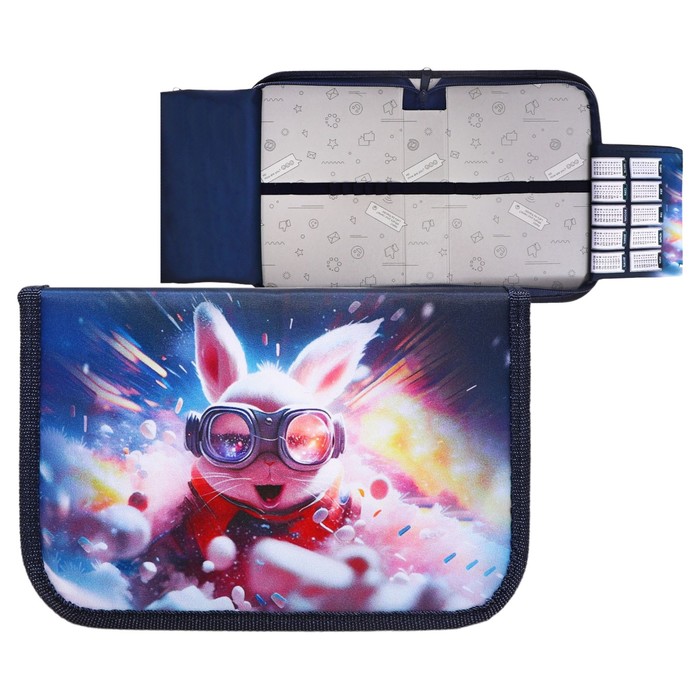 Пенал 1 секция 140 х 210 х 40 мм, откидной карман и косметичка, тканевый, Calligrata TOP Content "Супер заяц"