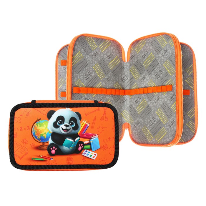 Пенал 3 секции, 125 х 205 х 55 мм, Calligrata 30П26/3 "Панда", ламинированный картон