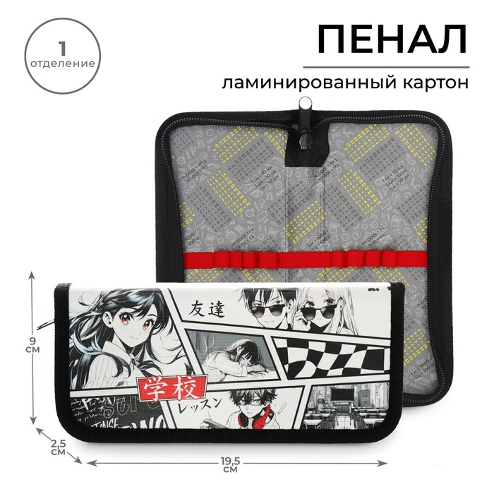 Пенал 1 секция, 90 х 195 х 25 мм, Calligrata "Аниме", ламинированный картон