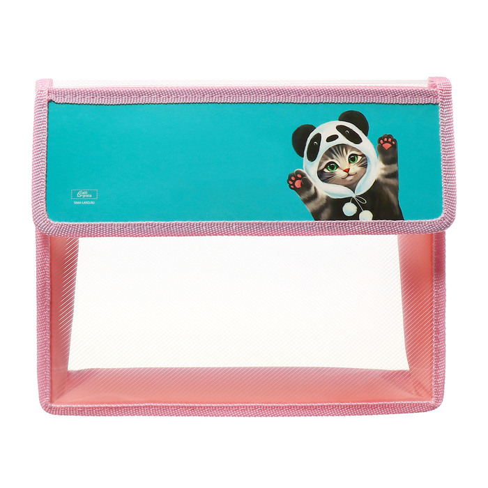 Папка для тетрадей А5 (230 х 190 х 50 мм), с клапаном на липучке, пластик/текстиль, Calligrata, "Котик панда"