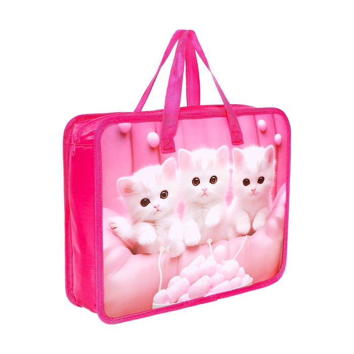 Папка с ручками пластиковая, А4, Белые котята