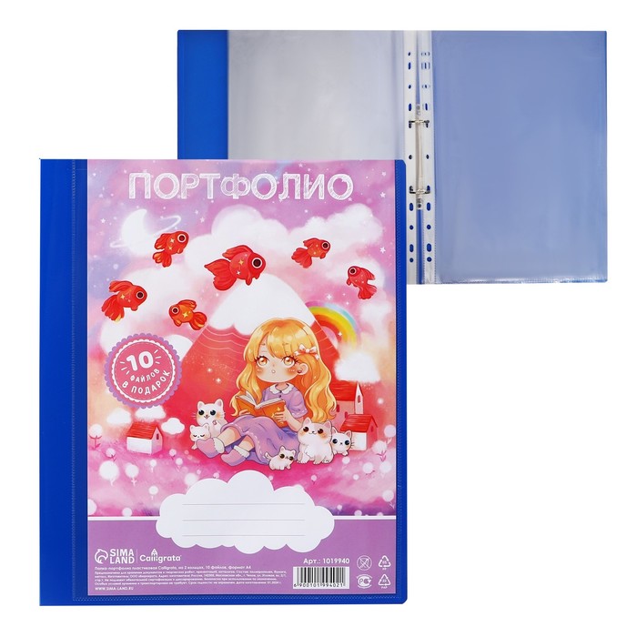 Папка-портфолио А4, Calligrata "Продленка", пластиковая, на 2 кольцах, для дошкольника, 10 файлов