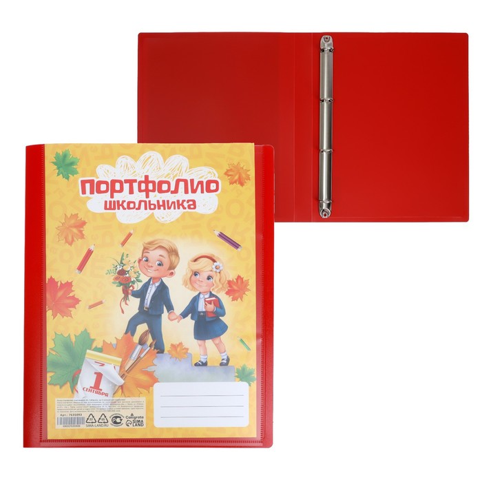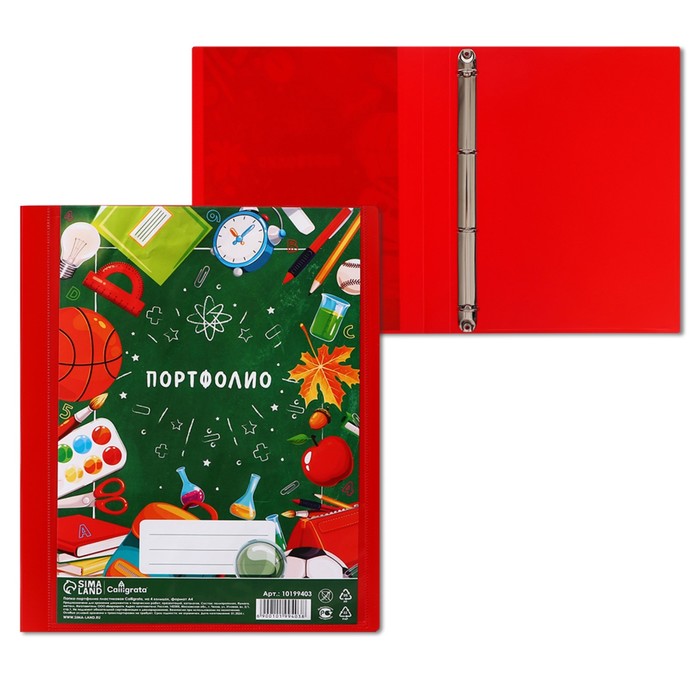 Папка-портфолио А4, Calligrata "Переменка", пластиковая, на 4 кольцах, для школьника, без вкладышей