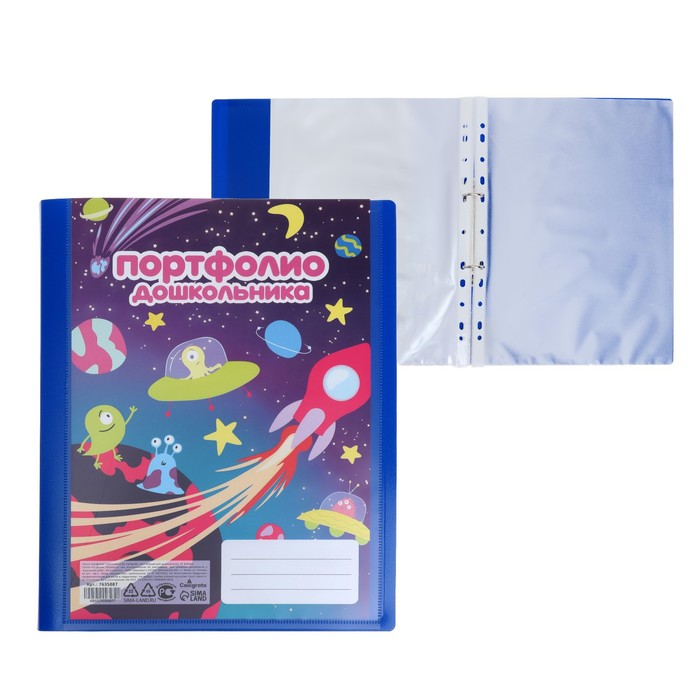 Папка-портфолио А4, Calligrata "Космические друзья", пластиковая, на 2 кольцах, для дошкольника, 10 файлов