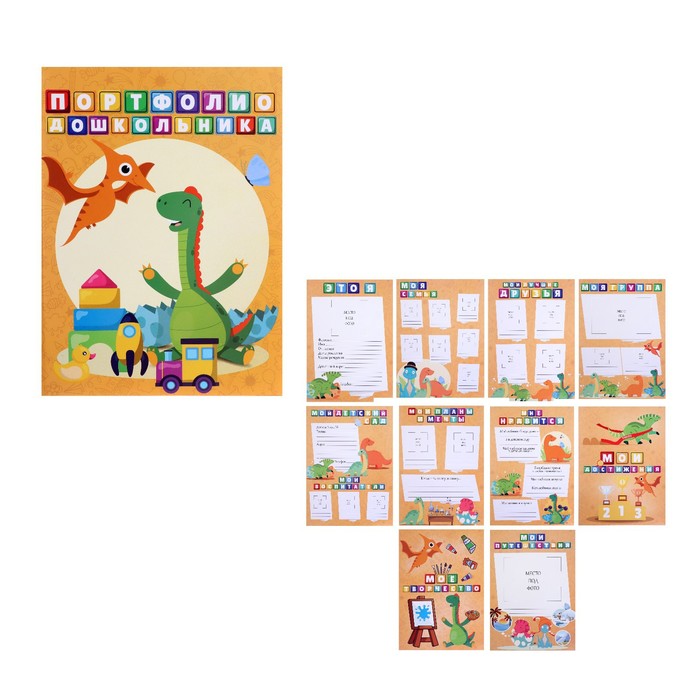 Листы-вкладыши для портфолио дошкольника, 9 разделов, 10 листов Calligrata, в папке