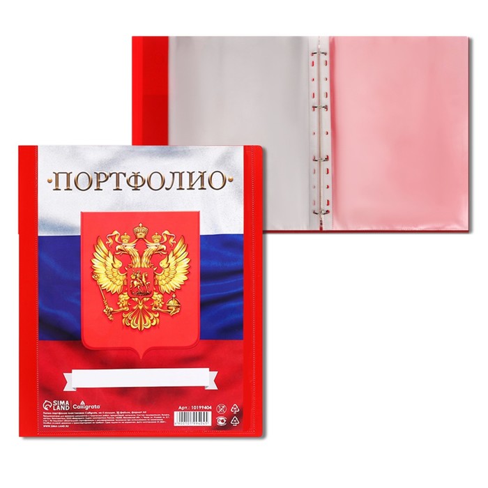 Папка-портфолио А4, Calligrata "Герб", пластиковая, на 4 кольцах, для школьника, 20 файлов