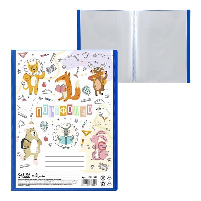 Папка-портфолио пластиковая А4, Calligrata "Начальная школа", 20 файлов