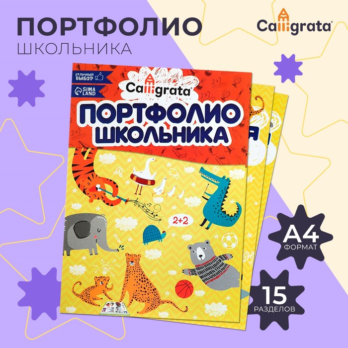 Листы-вкладыши для портфолио школьника, 15 разделов, 17 листов Calligrata, в папке