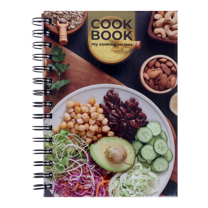 Книга для записи кулинарных рецептов А5, 80 листов на гребне "Веган", твёрдая обложка, цветные разделители