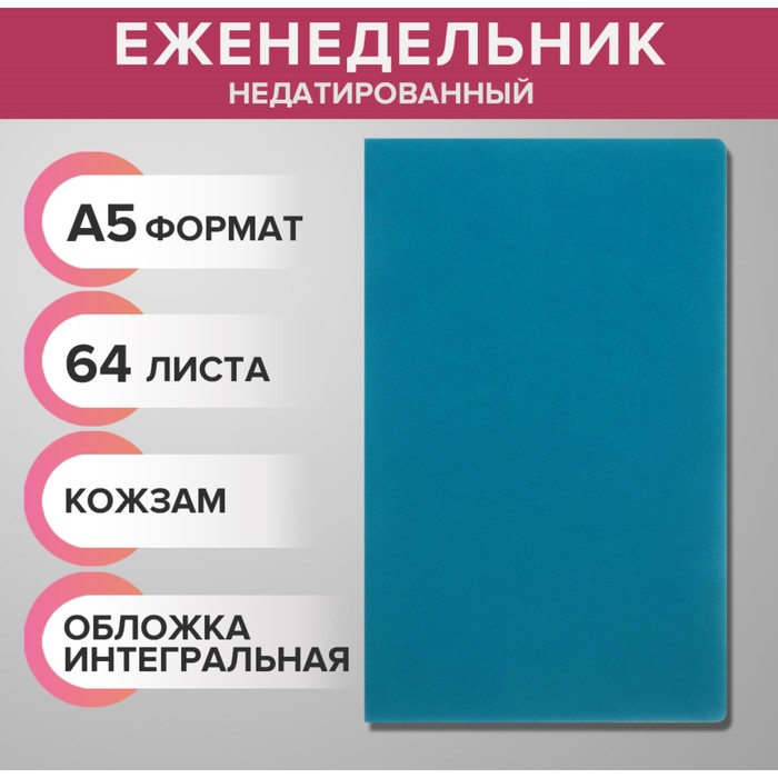 Еженедельник недатированный А5, 64 листа, на сшивке, интегральная обложка из искусственной кожи, бирюзовый