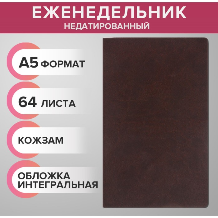 Еженедельник недатированный А5, 64 листа, на сшивке, интегральная обложка из искусственной кожи, тёмно-коричневый