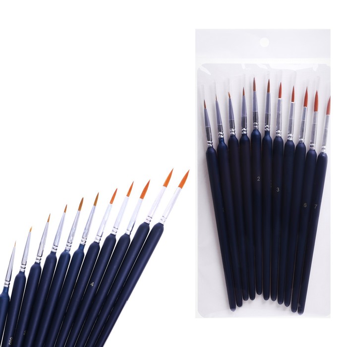 Набор кистей синтетика круглые 10 штук (№1, 2, 3, 4, 5, 6, 7, 8, 9, 10) с деревянными ручками