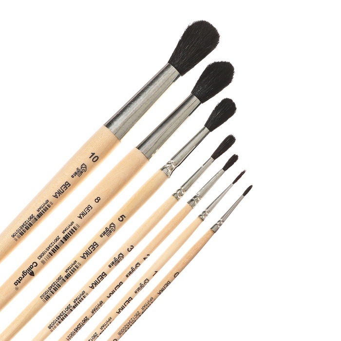 Набор кистей белка, круглые, 8 штук (№1,2,3,4,5,6,7,8) с деревянными ручками, на блистере