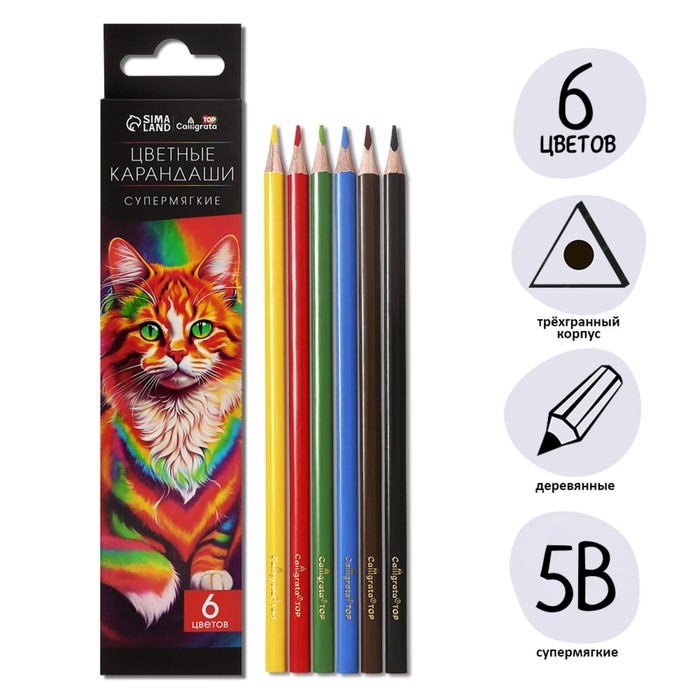 Карандаши 6 цветов TOP Calligrata, в картонной коробке, диаметр грифеля - 3мм, 5B