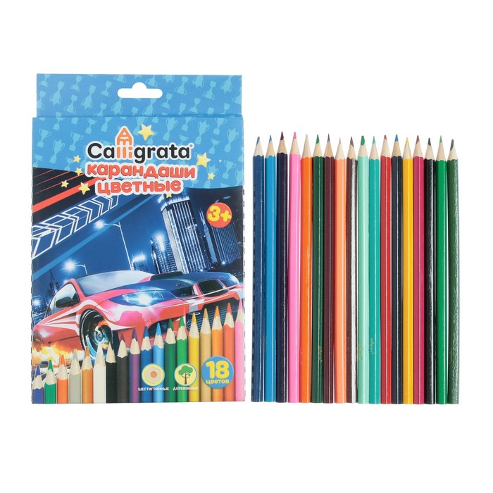 Карандаши 18 цветов Calligrata, шестигранные, в картонной коробке