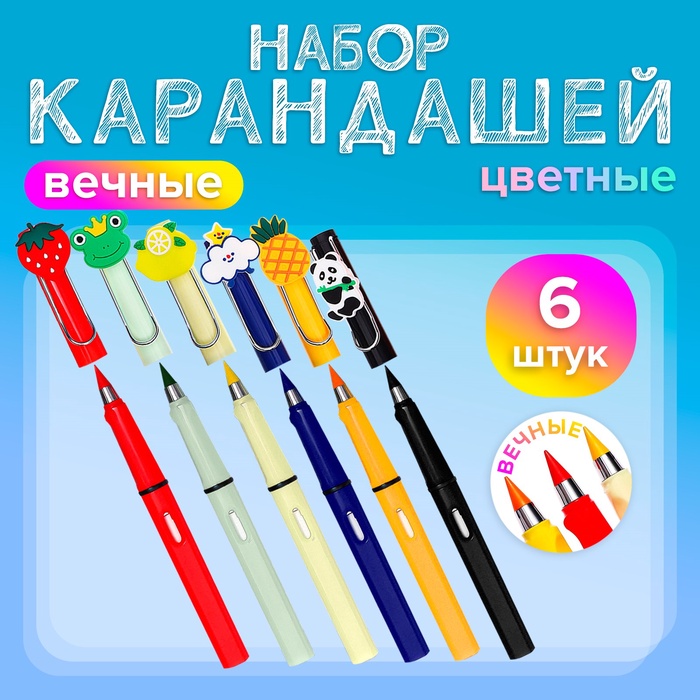 Набор карандашей, 6 цветов, вечные, резиновый декор, Calligrata